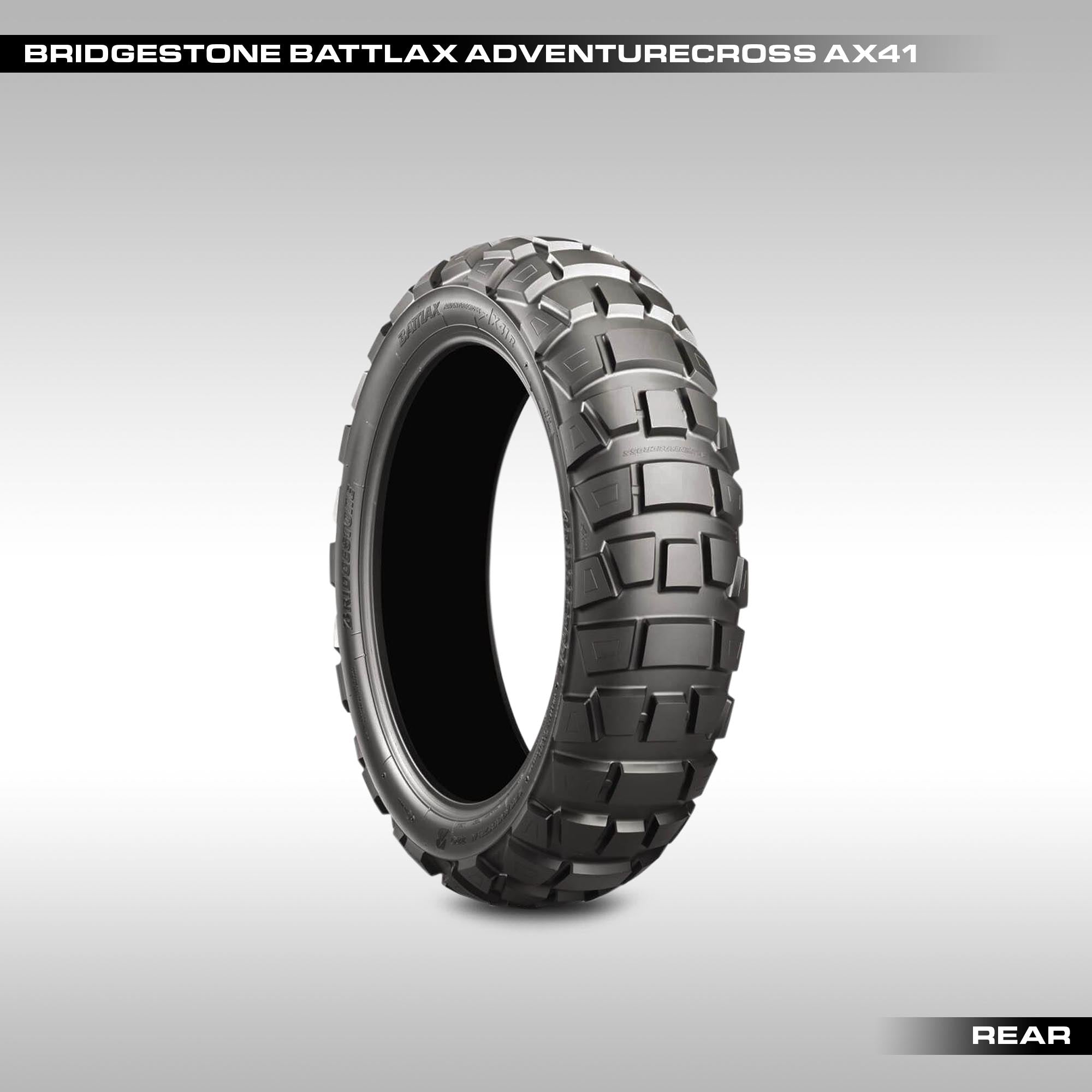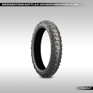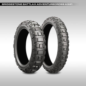 The Bridgestone Battlax Adventurecross AX41 is built for riders who demand real off-road performance without giving up predictable handling on pavement. Designed for aggressive ADV and dualsport use, the AX41 uses a high-traction block pattern, reinforced compounds, and a stable carcass to deliver confident grip in loose terrain while maintaining durability for long-distance travel.