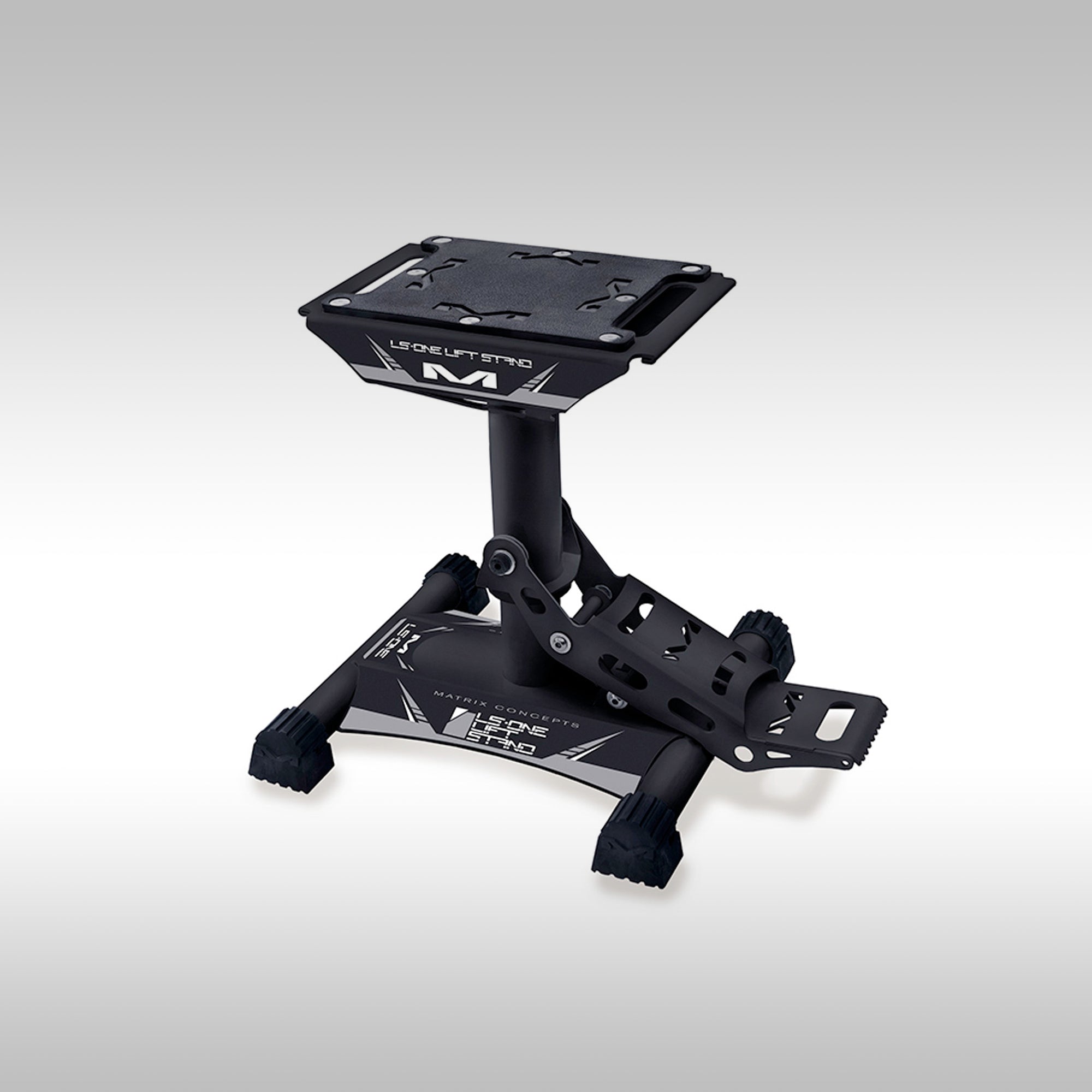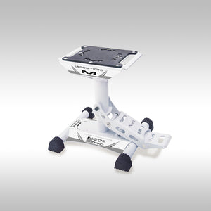 Place under the frame of your bike in a central location and step down. If it's not in a good spot for balance, drop it down, reposition the stand and step on the lever again. Super simple and easy. Easy to store away too. Smaller footprint than traditional stands.