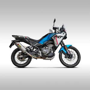 A clear enhancement in performance is achieved through the exhaust, with perfect throttle response across the rev range and power gains of 1,0 hp at 8,100 rpm, with torque increased by 1.5 Nm at 4,400 rpm when tested on the Akrapovič dyno against a CFMOTO 450MT with a standard stock exhaust. All of this is allied with the distinctive deep Akrapovič sound. It features easy plug-and-play installation, and no remapping is required.
