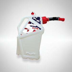 Constructed from heavy-duty HDPE plastic, this can is designed to withstand the heat of the track and the abuse of the truck bed. Available with a classic black sticker design or a USA sticker design.